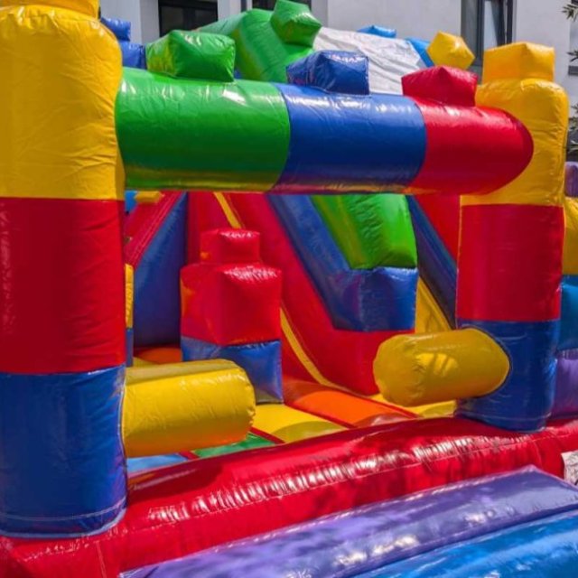 Baustein-Hüpfburg 4x5m mit Rutsche