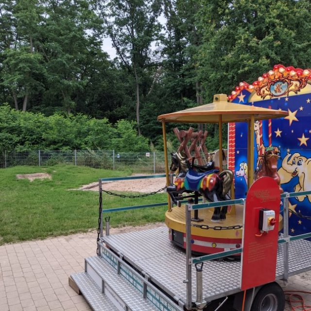 Unser kleines klassisches Pferde-Karussell bietet Platz für 3 Kinder. Montiert ist das Karussell fest auf einem Anhänger, auf dem auch eine beleuchtete Motivrückwand integriert ist. Auf- und Abbau sind so sehr schnell erledigt, so dass sich das Karussell ideal auch für Tagesevents eignet. Anlieferung sowie Auf- und Abbau erfolgen durch Mobile Funevents. Betrieben wird das Karussell an einer herkömmlichen 230V-Steckdose.